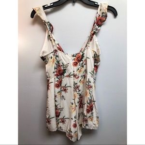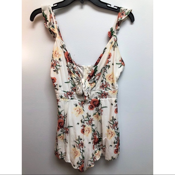 Super soft strappy floral romper. Adjustable straps and it ties in the front. Perfect for summer! I loved it but it was just too big on me!