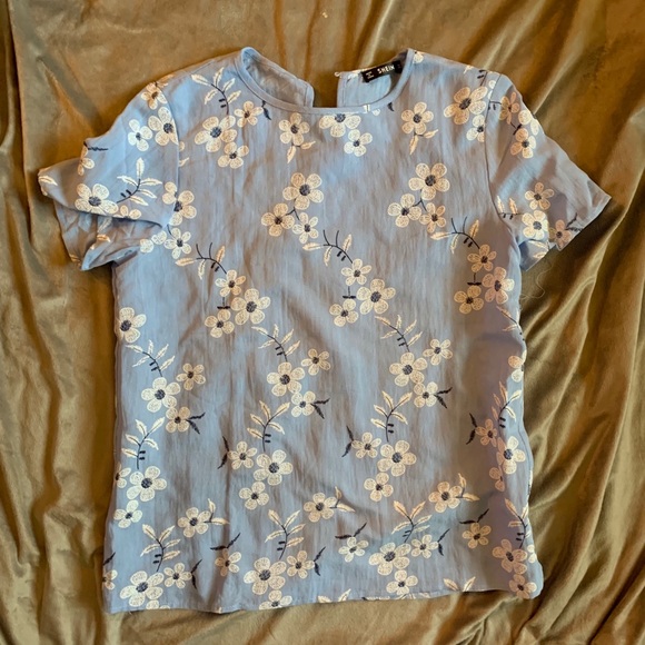 Light blue top with white flower pattern. Size Large.