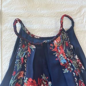 Floral patterned navy Joie dress with V neck and tie belt