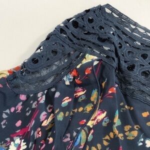 NWT 1 Sm Med Lg Floral printed blouse with flounced sleeves. Lattice scoop neckline. 100% Rayon.