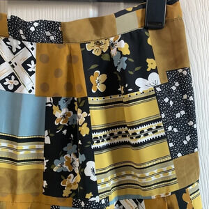 Floral print multicolor retro Midi length pleated skirt A-line skirt