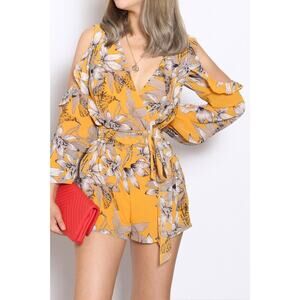 FLORAL PRINT WOVEN ROMPER RUFFLED LONG SLEEVE DETAIL -LINED