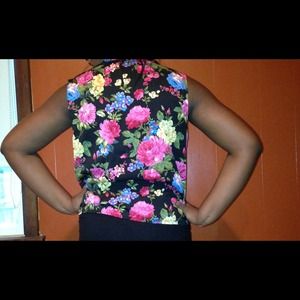 Cute button down floral print shirt with tie in the front. Barely worn. Size says XL but fits smaller. (Large) Looks new. 🎀