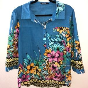 Simple quarter inch sleeves , half button up (3 buttons) floral/ safari print shirt with collar