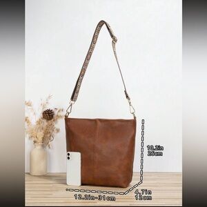 Floral print strap vegan leather boho vintage shoulder bag purse brown
