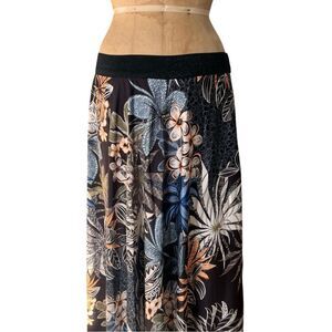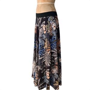 Elevate your wardrobe with this stunning floral maxi skirt, designed to make a statement. Featuring a vibrant array of flowers in rich hues of blue, orange, and green, this skirt offers a playful yet elegant look. Crafted from 100% polyester and made in Italy, it provides a comfortable and flowing fit. The black waistband adds a touch of contrast, ensuring it pairs beautifully with a variety of tops. Perfect for both casual outings and more formal occasions, this skirt is a versatile addition to any closet.