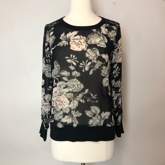 This pullover has a floral pattern and is slightly sheer. There is also a nice lace detail on the shoulders.