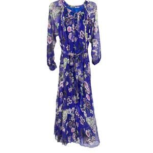 Summer Holiday Party Bohemian Maxi Dress Women's Long Sleeve Chiffon Floral and Woodland Animal Print Ruffles Loose Long Dress. Semi sheer.