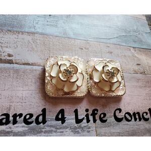 Square rope style conchos 1 1/4" Set of 2 screw back conchos. We use a combination of Swarovski and percosia crystal and stones for bling to give a unique effect please pm for customization requests. Handcrafted western tack bling great way to snazzy up your bridle or other tack can also customize colors and styles. Plated screwback concho with sealed in clear poly resin. Easy to add to a belt, purse, wallet, backpack and really anything you can punch a hole in or can covert into a pendant or drawer pull use your imagination. Conchos can also can used as a focal pendant or made into a bridle rosette, earrings, necklaces, rings, bracelets, tack accessories, bling for your chaps, saddle blanket, flip flops, key chains, dog collars, halters and more Thanks for looking!