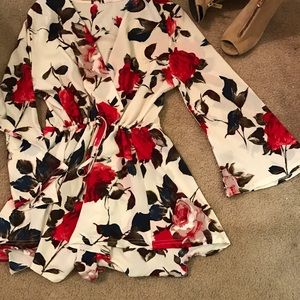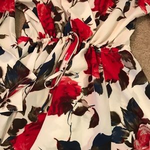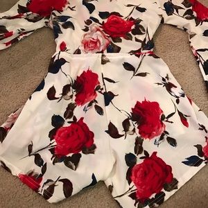 Gorgeous silk, floral romper. Can be paired with heels or sandals. Never worn. Drawstring adjustable waist. Short and flirty but classy.