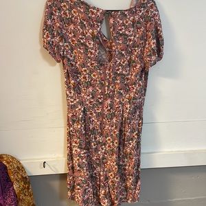 Super cute floral romper that fits beautifully. Not stretchy material, but comfortable to wear. Fits like a true medium.