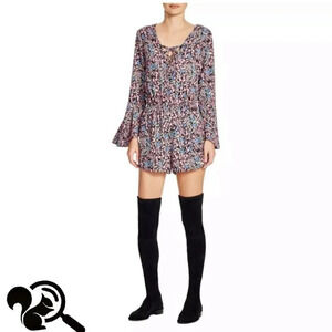 Long sleeve romper with laces chest and the perfect floral print. I love that it goes from summer to fall with a change of shoes and a hat!