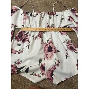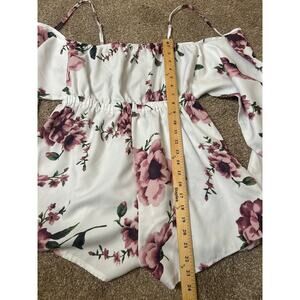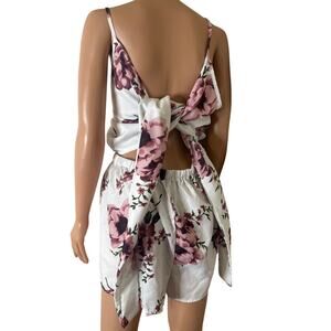 Floral romper white pink back self tie elastic waist lightweight SZ 1XL Summer