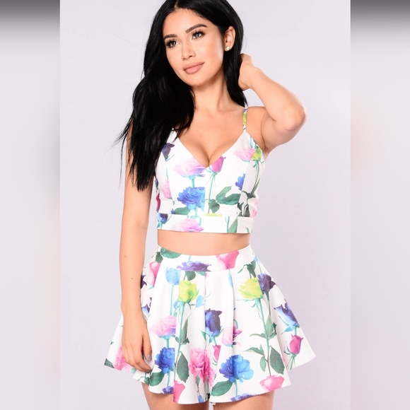 Floral set from Fashiom Nova, the bottoms look like a skirt in the front and shorts from the back.