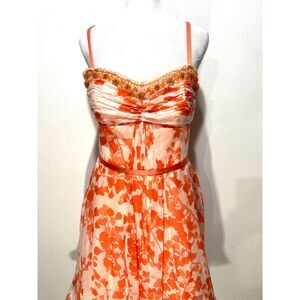 Floral silk dress romantic Y2K spring coquette sequins flare easter women M