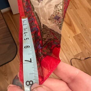 Floral silk scarf from India. Width 19.5 inches and length 68 inches. Never been worn— perfect condition.