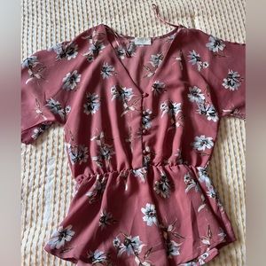 Spring is blooming everywhere! Subtle, ditzy floral print flits across lightweight chiffon to shape this romantic top. Flouncy hem falls from an empire waist length, completing this must-have spring top.