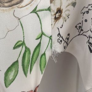 Off the shoulder flared 3/4 sleeve w tie at waist. Pairs amazing w a pair of fitted dress pants, no belt!