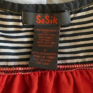 Corton striped fabric with stretchy orange torso. Floral print on front. Yellow straps. Super cute!