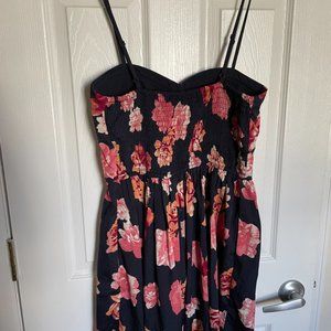 navy dress, floral dress, roses, dress with pockets, corset dress, stretch, light, spring, summer, beach, vacation, Miami, flirty