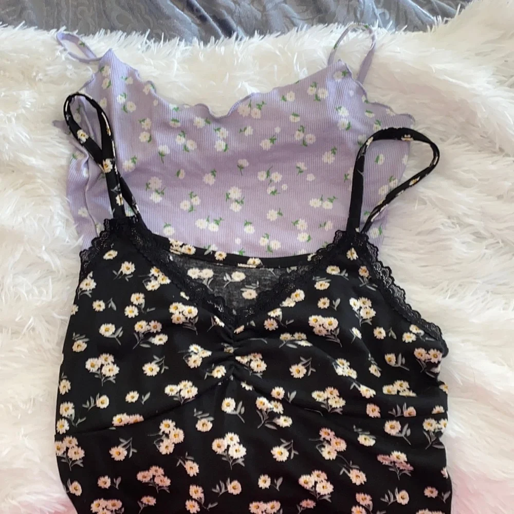 2 floral tanks Both never worn Purple size medium Black size large