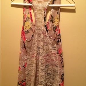 Super cute floral tank top with a lace back perfect for spring and summer!