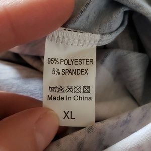 @marissazomberg, posted fabric content. The Xl is 22inch across the bust. The L is 19.5 inches. Length of L is 28 inches shoulder to hem