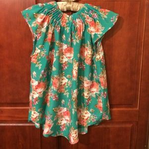 Adorable floral cap sleeve top. Beautiful pintuck detail on the neckline. Beautiful colors for summer! Worn once! Two pockets on the front. I'm perfect condition. Size tag is missing but I'm pretty sure it's a M/L.