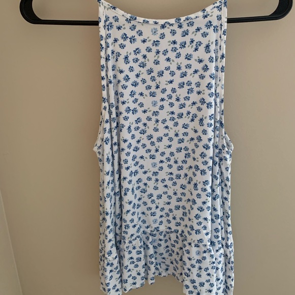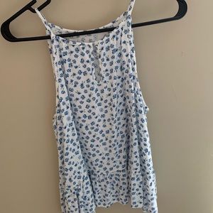Arizona Jean co, blue floral top, key bold cut out on back, size medium