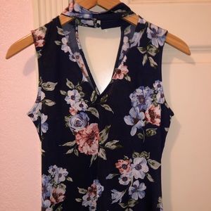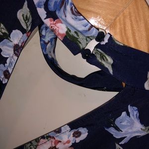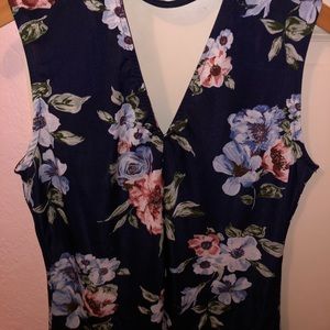 Navy blue floral top with flattering neckline. Stretchy and comfortable material. Size small. Only worn once!