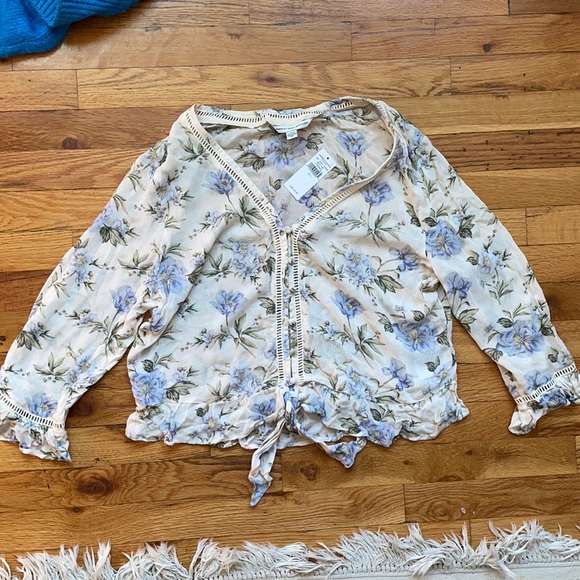 American Eagle floral lightweight floaty top. Hits just above waist. Flutter sleev detail. Need to wear a cami under. A bit see through but beautiful for summer or spring.