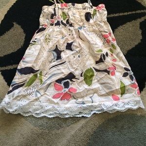 Spaghetti strapped top with buttons on chest area and lace detailing running down