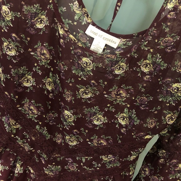 Super cute floral tunic with lace accents. Sheer, very cute over leggings for fall.