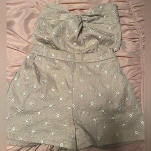 XS Beige two piece set white floral set. Shorts with tube top. Perfect condition.