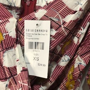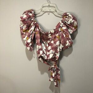 Floral multi burgundy wrap crop too. Back zipper. 90% Nylon 10% Polyester. X-small.