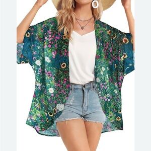 Vibrant floral kimono cardigan. Perfect for layering. Features a mix of colors for a stylish look.