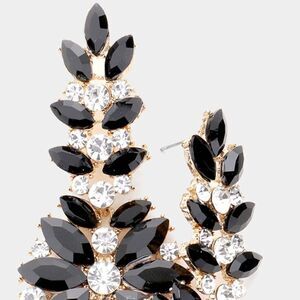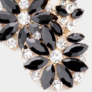 Floral Black Round Marquise Stone Cluster Evening Earrings