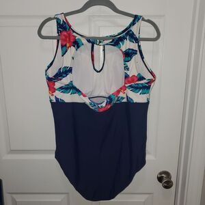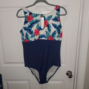 Dive into summer with this stylish floral one-piece swimsuit. Featuring vibrant blue and pink hues, it's perfect for a day at the beach or pool.