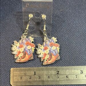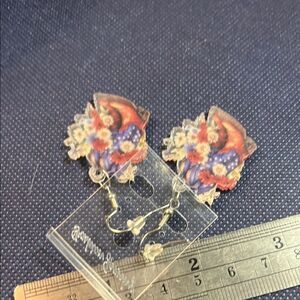 Add a touch of whimsy to your outfit with these charming floral boot earrings. Featuring vibrant red and purple hues, these earrings are perfect for any occasion.