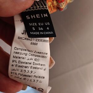 This very colorful floral halter top is a size Small. Stretch material with silvertone hardware. In excellent condition.