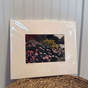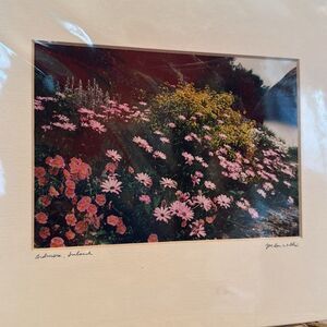 Enhance your home with this beautiful floral landscape art print. Featuring vibrant pink and green hues, this piece adds a touch of nature to any room.
