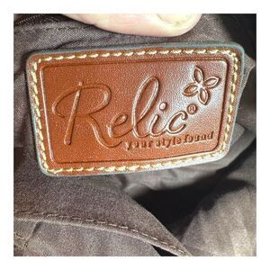 This Relic handbag features a vibrant floral pattern that exudes style and sophistication. Brown handles complement the colorful design, adding elegance. An attached heart charm adds a distinctive touch. A functional choice for those who appreciate fashion and practicality.