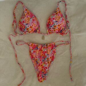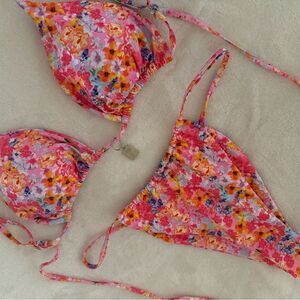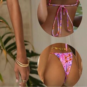 Enjoy the sun in this vibrant floral pink bikini set. Perfect for a stylish beach day.
