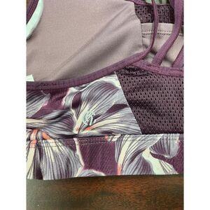 Floral Print Strappy Ventilated Sports Bra in Dark Berry