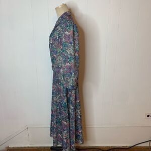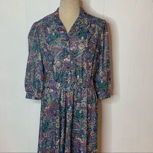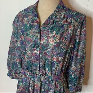 Vintage 70s 80s Floral Print Blouson Secretary Day Shirt Dress Sz 14