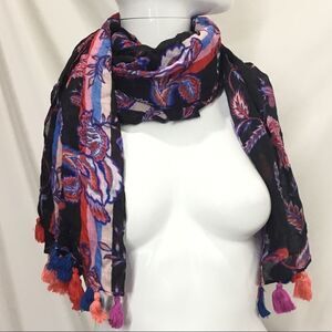 Floral Print Scarf with Tassel Trim (F2)