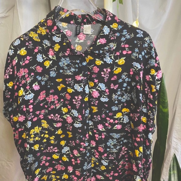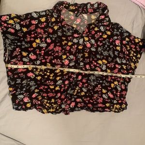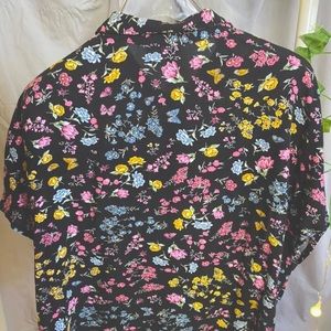 Black floral short sleeve button down blouse