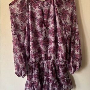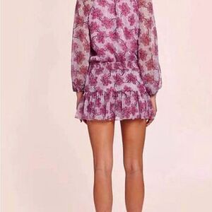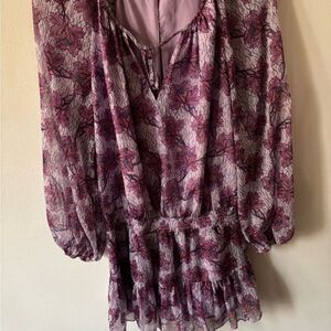Elegant floral V-neck dress with long sleeves, perfect for any occasion. The pink and purple hues add a touch of sophistication.