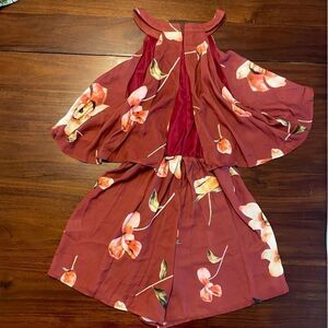 Floral Wine Colored Spring Romper Medium