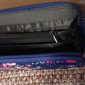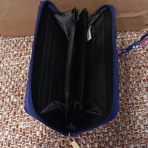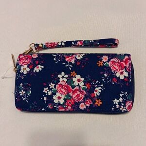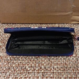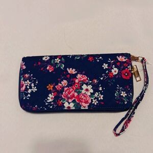 Women's Quilted Fabric Blue Floral Wristlet. Zipper Closure. Many Inner Slit Pockets. Inner Zipper Pocket